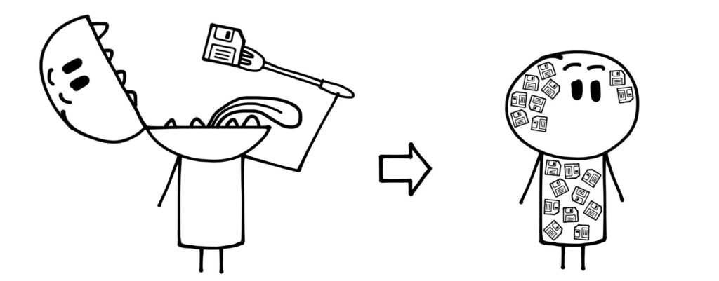Jídlem je hudba, kterou posloucháme; filmy, na které se díváme; obraz, který pozorujeme; cizí myšlenky a světonázory, které v průběhu života nasáváme; informace, které nekriticky přijímáme.