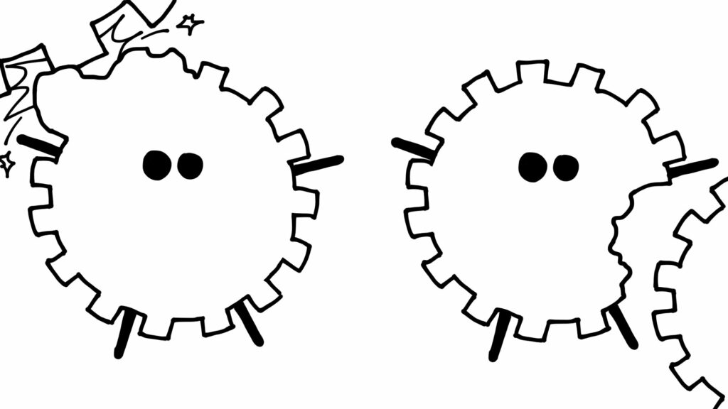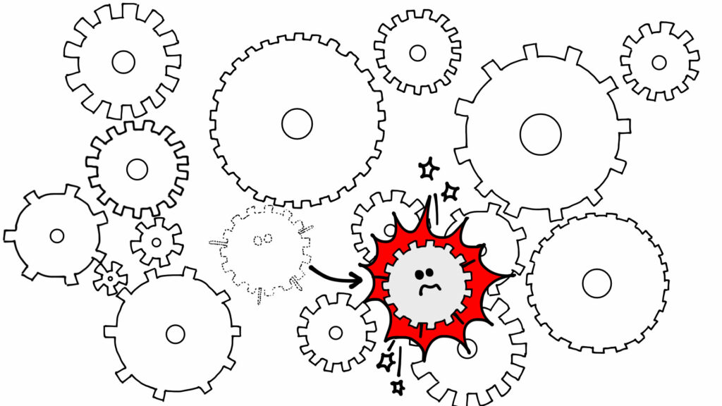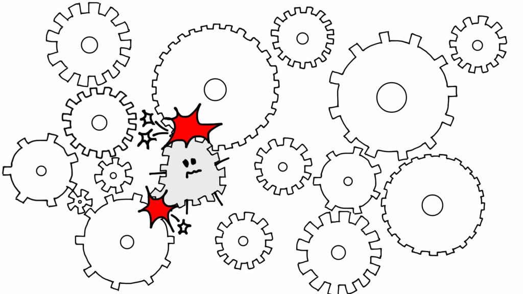 Pokud nemáte správný tvar, nebo jste v mechanismu zasazeni na nesprávném místě, nastává problém. Běh mechanismu bude totiž drhnout – ozubená kola do sebe nebudou zapadat a budou se vzájemně hoblovat a ničit. Vy budete ničit své okolí, a okolí bude zároveň ničit vás.